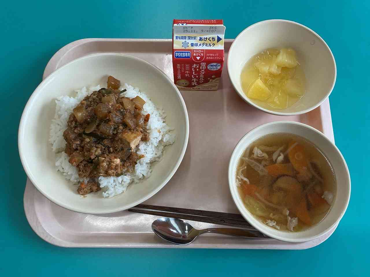 ☆マーボーだいこんどん ☆ちゅうかスープ ☆パインかん・レモンゼリー ☆ぎゅうにゅう