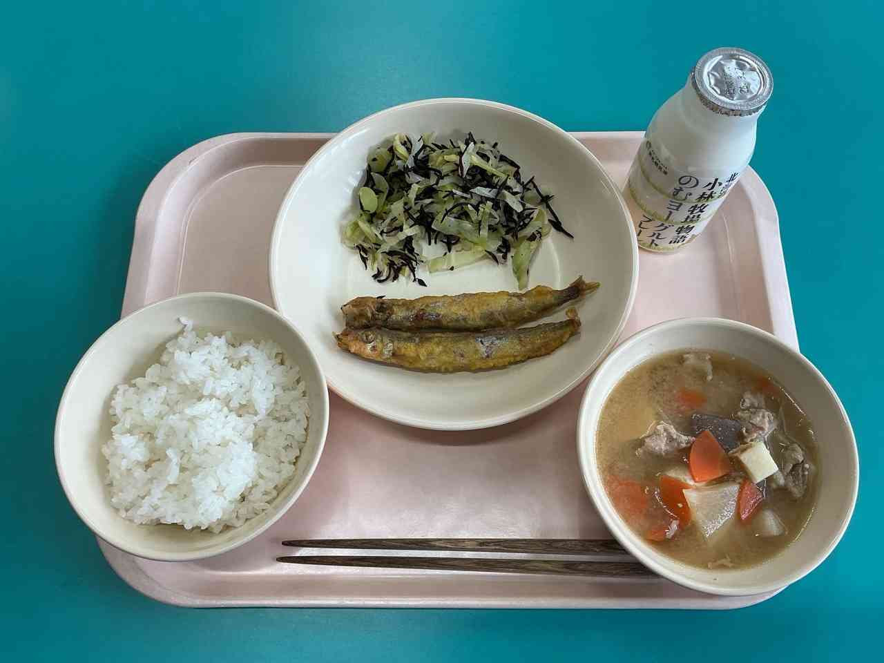 ☆ごはん ☆とんじる ☆ししゃものカレーあげ ☆ひじきサラダ(わふうドレッシング) ☆ヨーグルト